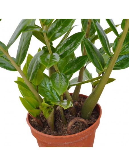 Very easy and durable plant suitable even for the less experienced, ideal in the home and office. After purchase, it must be repotted in a container slightly larger than the previous one. Thereafter, repotting should be done every two years. Use high-quality green plant potting soil or universal potting soil. Never use soil from other crops. It requires very little attention, also recommended for those who have no experience in plant care; the only two important things are: lots of light and never too wet soil. The stems that dry out should be cut by cutting the stem at the base. It is important to keep the foliage free from dust by cleaning the leaves with a soft brush, once a month or when necessary. Act gently because the leaves come off easily. It requires moderate watering, for the sole purpose of moistening the soil if it is completely dry (usually every 7-10 days). Empty the saucer of unabsorbed water after about 15 minutes. It is useful to vaporize rainwater or non-calcareous water on the foliage, in the winter months, when the air in the rooms becomes very hot and dry. Zamioculcas has a low nutritional requirement, it must be fertilized all year round only every 15-20 days. Never exceed the dose of fertilizer: better a little than too much. Before fertilizing it is good to moisten the soil.