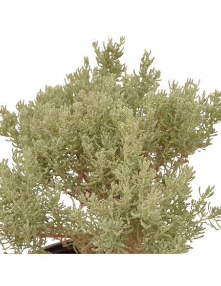 Santanolina plant has an upright or semi-prostrate bearing, and forms dense rounded bushes, consisting of thin woody stems covered by very divided leaves, composed of small linear lobes, gray-green in color, with a woolly appearance, intensely perfumed. In summer it produces small, yellow, rounded flowers, gathered in apical inflorescences. Ideal as a border plant, for the very decorative foliage, it is also used in aromatic plants' beds, even if the fragrant leaves are not commonly found in the recipes of our peninsula. The santolina has digestive, antispasmodic, tonic-stimulating, antiseptic (infused or decoction) properties. For external use as antipruritic in case of insect bites. Its leaves and twigs, once dried, can be kept in a glass container for many months