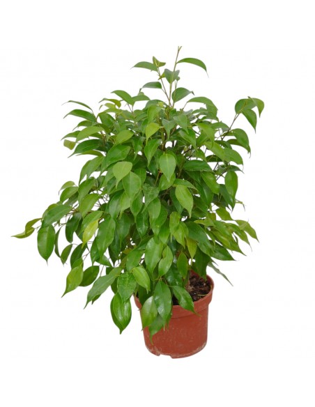 La pianta di Ficus benjamina è una pianta d'appartamento che appartiene alla famiglia delle Moraceae e nativa dell'Asia sudorientale e dell'Oceania. Pianta elegante dai rami arcuati, con foglie lucide di forma allungata e nervature scure.