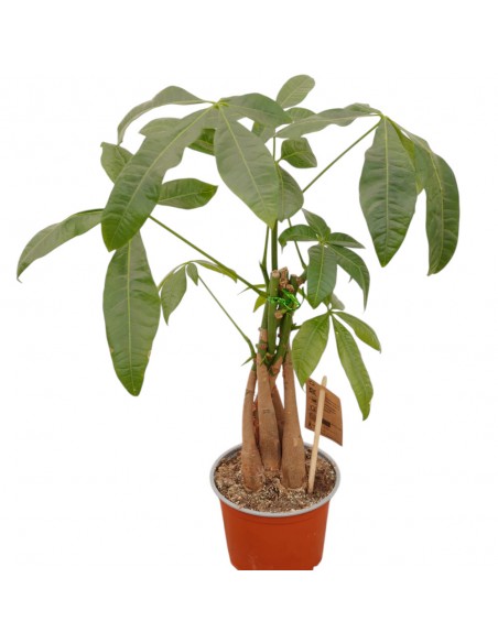 La pianta Pachira aquatica, comunemente conosciuta come albero del denaro o albero di Guiana, è una pianta da appartamento appartenente alla famiglia delle malvacee. Originaria delle regioni tropicali del Centro e Sudamerica, la Pachira aquatica è una pianta molto apprezzata per la bellezza del suo fogliame lucido e per la forma dei suoi fusti, che spesso vengono intrecciati per creare un effetto decorativo.