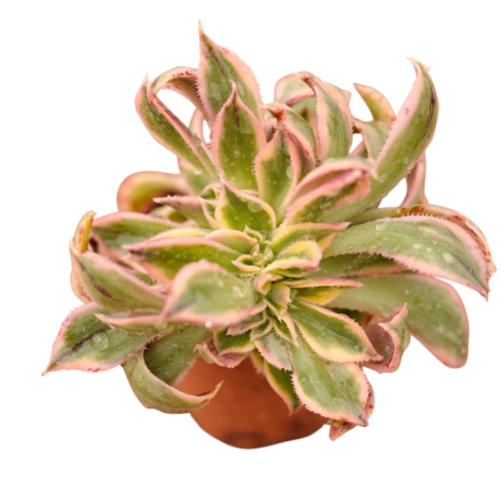 ☀️ Luce ed Esposizione: Adora la luce intensa. Per mantenere la variegatura giallo-crema e i bordi rosa, ha bisogno di molta luminosità. In casa va tenuto vicino a una finestra, all'aperto preferisce il sole filtrato o il sole diretto del mattino (evita il sole bruciante del pomeriggio estivo).