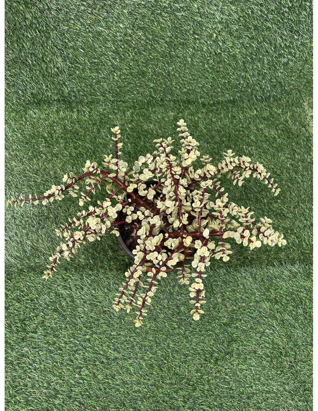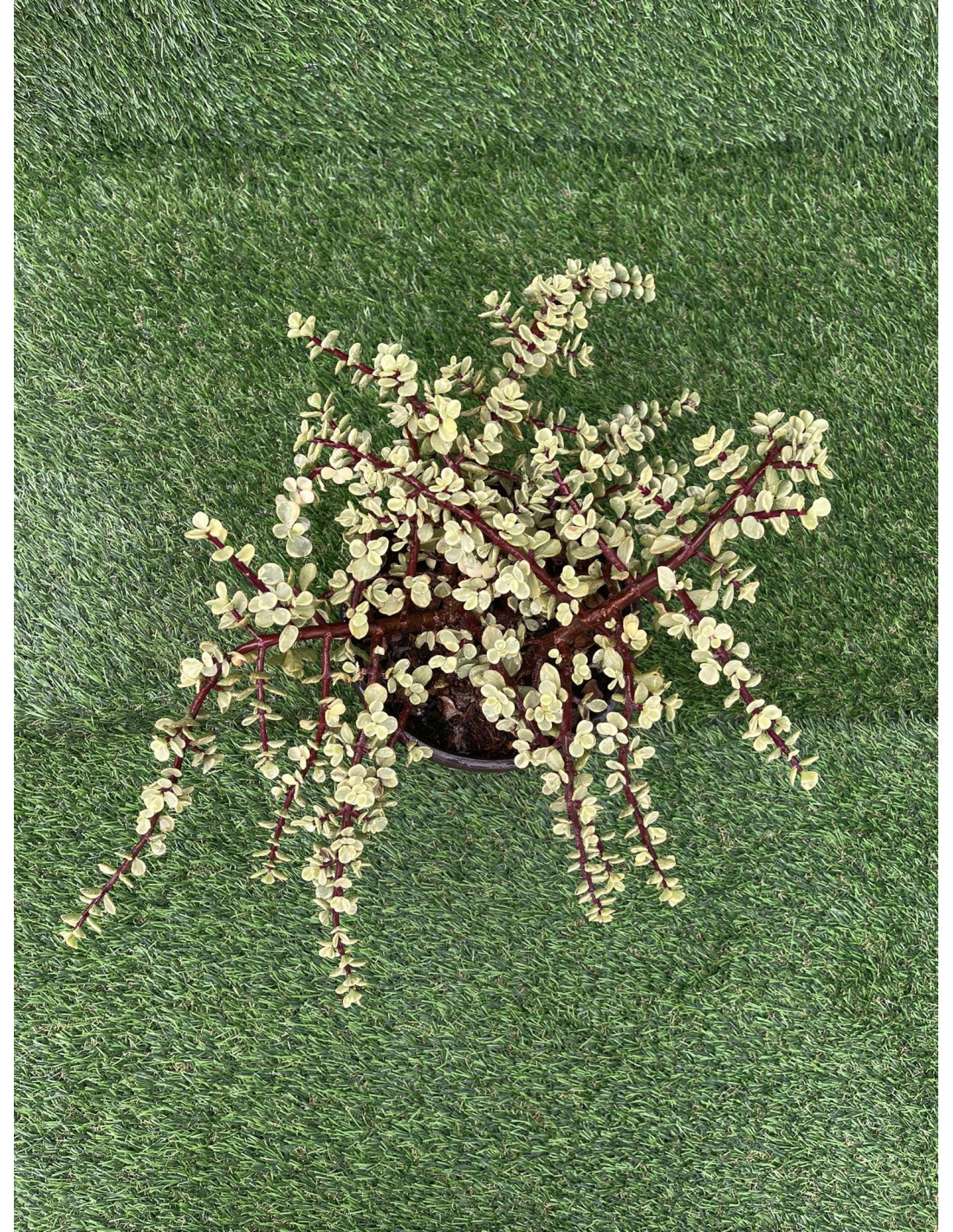 Un gioiello di luce per la tua casa! La Portulacaria afra 'Variegata' è una succulenta arbustiva che incanta per il contrasto cromatico: piccole foglie carnose color crema e verde smeraldo montate su fusti lucidi che, con il tempo, diventano di un rosso bordeaux intenso. Cresce come un piccolo albero ed è la pianta preferita da chi vuole approcciarsi al mondo dei bonsai senza lo stress delle cure complicate. Robusta, scenografica e pronta a illuminare ogni angolo!