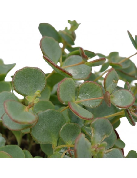 Questa pianta è conosciuta con molti nomignoli, quali Erba Teresina, Erba di Santa Teresa, Crassula giapponese o Seta Giappones ma sta di fatto che in qualsiasi modo viene chiamata è una pianta grassa tra le piu note ed utilizzate; nella sua semplcità ha un potere decorativo molto forte caratterizzato, dapprima per le sue foglie disposte a verticilli di tre di una colorazione cangiante tra il verdino e l'azzurro che nel periodo tra settembre e Novembre si contornano di un bel rosso, e poi per i suoi fiori che si presentano come dei pon pon composti da tanti piccoli fiorellini rosa.